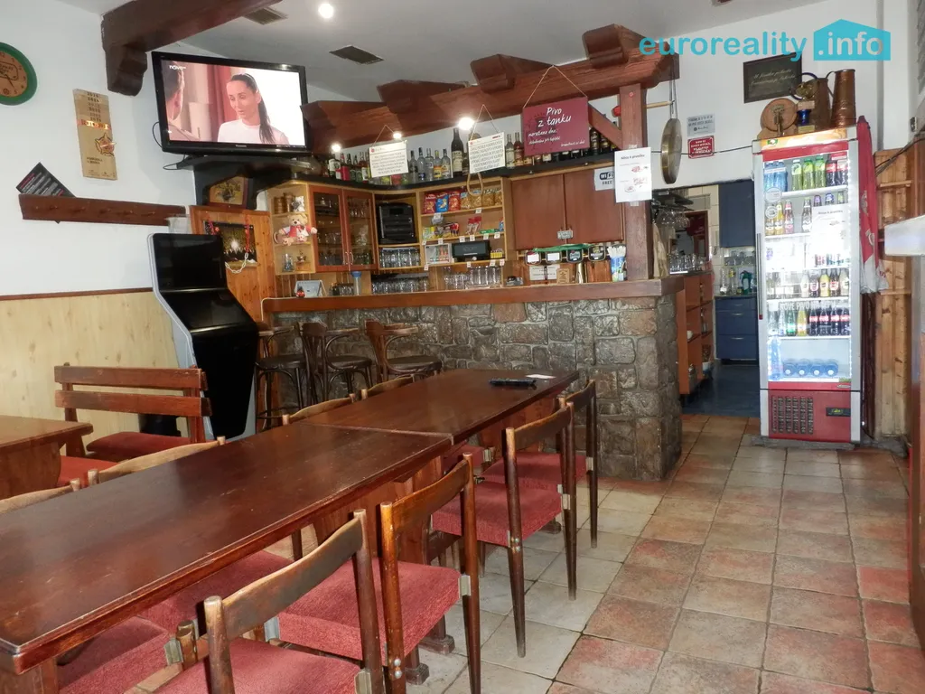 Z lokálu je vstup i do jídelny s cca 35 místy k sezení a vchod na 2x toalety. Navazuje salónek se šipkami s cca 30 místy k sezení. Další místnost s vlastním vchodem a dalšími toaletami je nevyužitá.