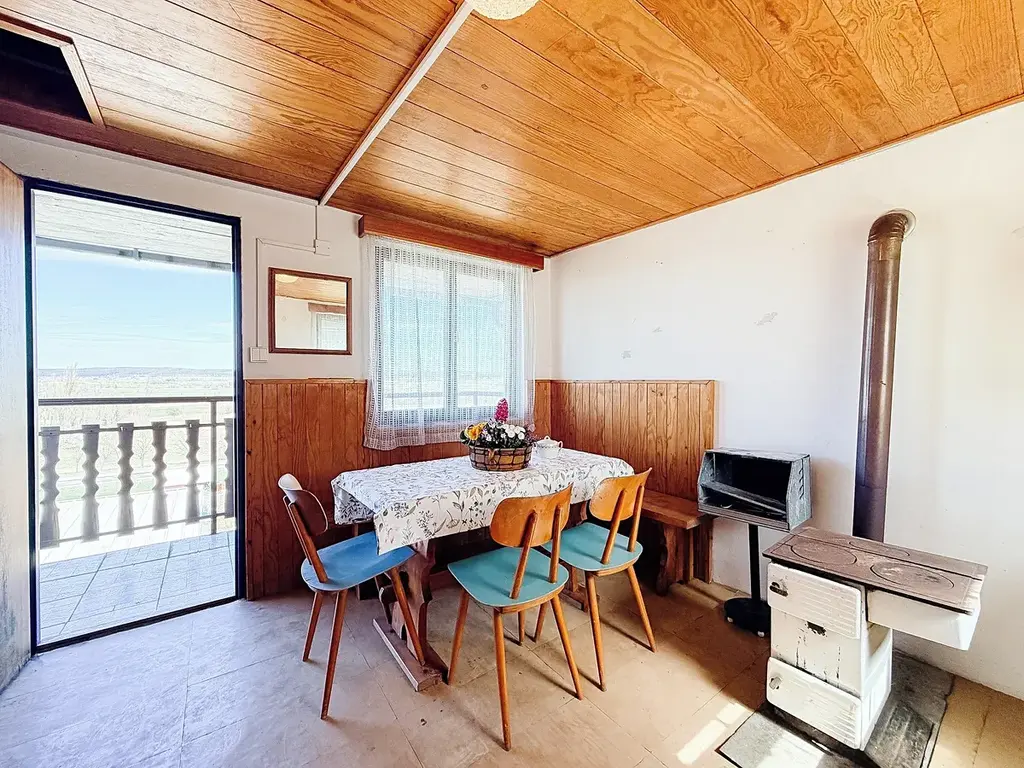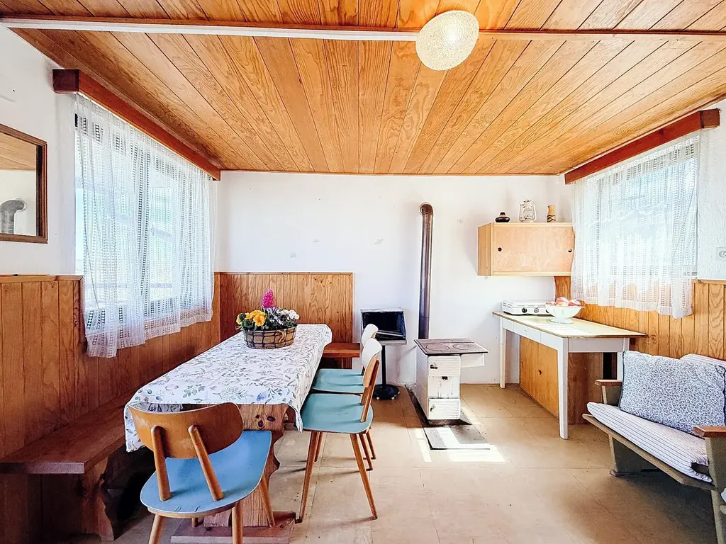 Obytnou část tvoří jedna místnost s kamny, která vás v chladných dnech příjemně zahřejí, nebo na nich můžete i něco uvařit. Po žebříku se z místnosti dostanete na nízkou půdu s okénkem. Zde je možné udělat spaní.