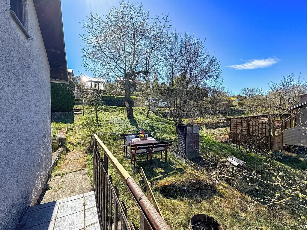 Na zahradě s výhledem do širokého okolí máte možnost relaxace a odpočinku, nebo se věnovat zahradnickým činnostem. Na pozemku jsou ovocné stromy a skleník.