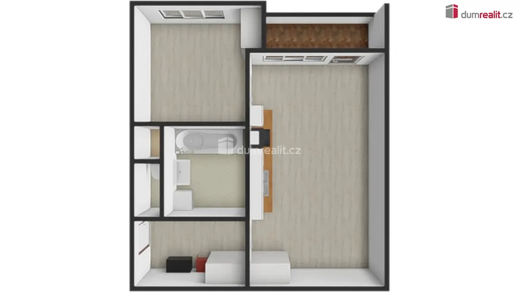 Dumrealit.cz Vám zprostředkuje exkluzivně pronájem světlého bytu 2+ kk (35 m²) s balkonem (3,8 m²), který prošel kompletní rekonstrukcí. Tento byt je umístěn v 5. patře zrekonstruovaného panelového domu v ulici Pod Hybšmankou Praha 5 a je volný od května k nastěhování. Dispozice tohoto bytu tvoří: obývací pokoj (20,1 m²) se vstupem na balkon (3,8 m²) s velmi pěkným výhledem do zeleně, dále ložnice přístupná z obývacího pokoje (7,1 m²), koupelna (2,6 m²) s vanou a prostorem na pračku (není v ceně nájmu), chodba (4,1 m²) a samostatné WC (0,9 m²). Byt je po kompletní rekonstrukci, v ceně je kompletní kuchyně se spotřebiči (vestavená lednice s mrazákem, varná deska, digestoř, trouba, vestavěná mikrovlnka a myčka nádobí), 3 x vestavění skříň = ložnice, obývací pokoj a chodba, botník a komoda na chodbě + police v obývacím pokoji. Ostatní bude prázdné, byt bude nyní nově vymalován. Vytápění je pomocí dálkového topení, ohřev vody přes vlastní bojler umístěný ve WC místnosti. Internet – v domě je optika, nájemce si na sebe může přihlásit. V domě je menší výtah, dům není bezbariérový - 6 schodů do domu. Zvíře řešíme individuálně. V okolí je absolutní klid, zastávka autobusu (Podbělohorská) je 3 minuty od domu. Pronajímatel nabízí dlouhodobý pronájem, na rok s možností pravidelného prodlužování. Služby jsou plně vyúčtovatelné, elektroměr se hlásí na nájemce. Velmi doporučuji všem kteří hledají byt 2+kk s balkonem, který je po kompletní rekonstrukci v Praze 5 – Smíchov. Ev. číslo: 655291.