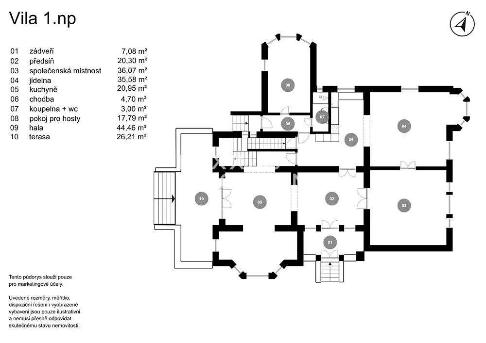 Vila Sanssouci je výjimečné rezidenční sídlo, které v sobě spojuje noblesu přelomu 19. a 20. století, absolutní soukromí a velkorysý prostor. Celý areál tvoří hlavní vila a samostatný vedlejší objekt. Stavby jsou zasazené do pečlivě udržované parkové zahrady o rozloze přibližně 8 500 m², která vytváří atmosféru klidu a nadčasové elegance.