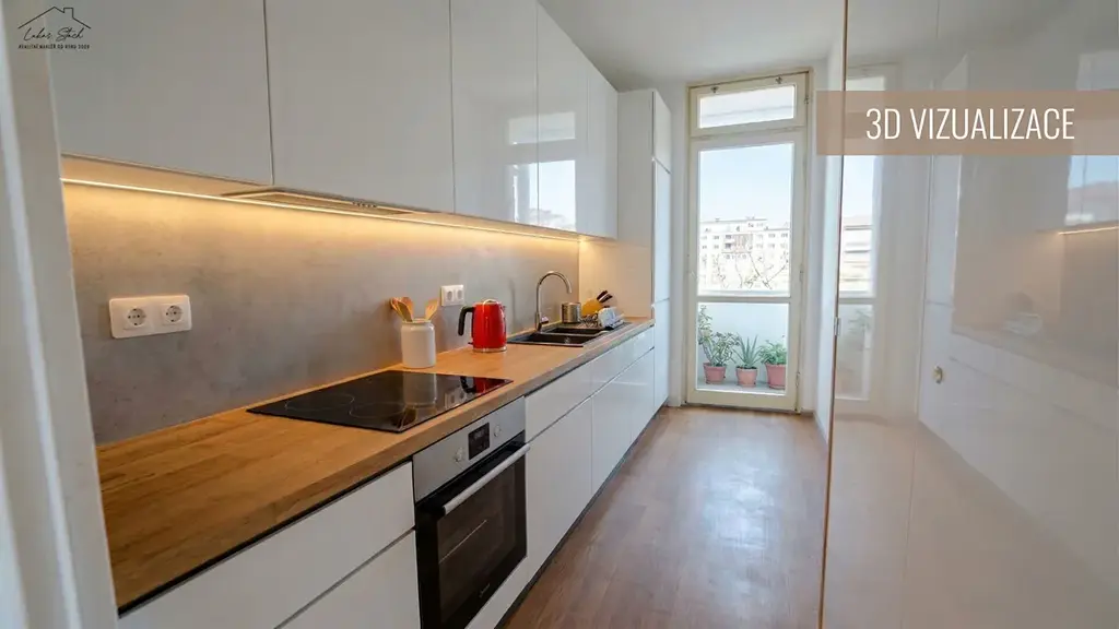 Pro lepší představu jsem nechal připravit vizualizace možného budoucího stavu, které najdete v galerii nebo přehledně na webové stránce bytu na mém webu v záložce „Nabídka nemovitostí“. Odkaz najdete výše nebo u mých kontaktních údajů, případně mi napište a rád vám ho pošlu.