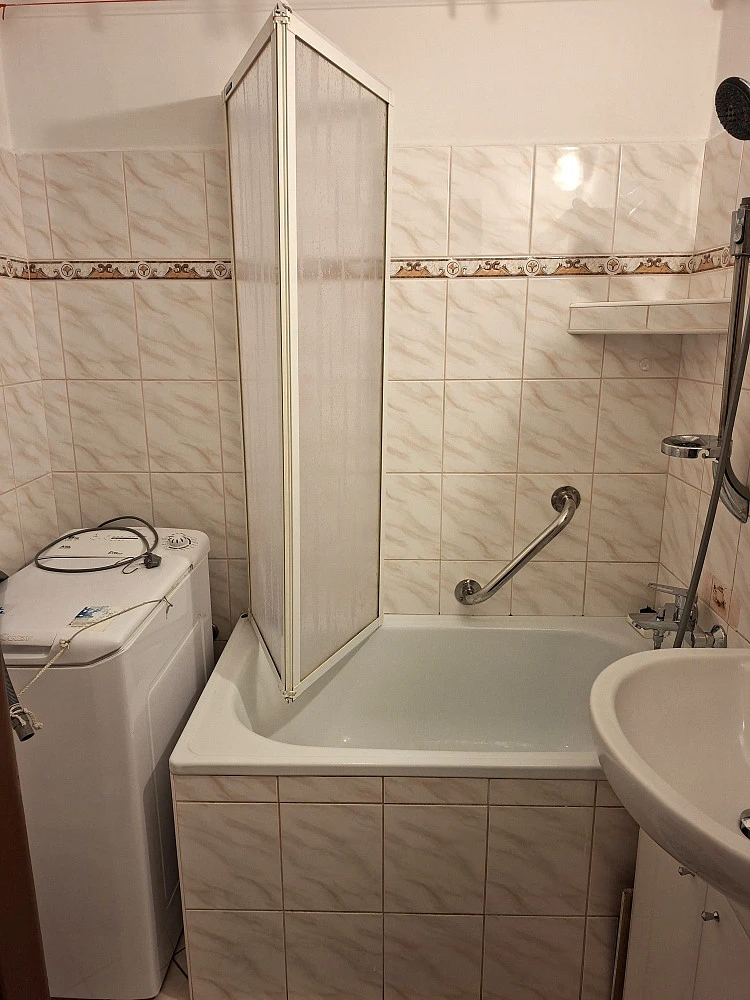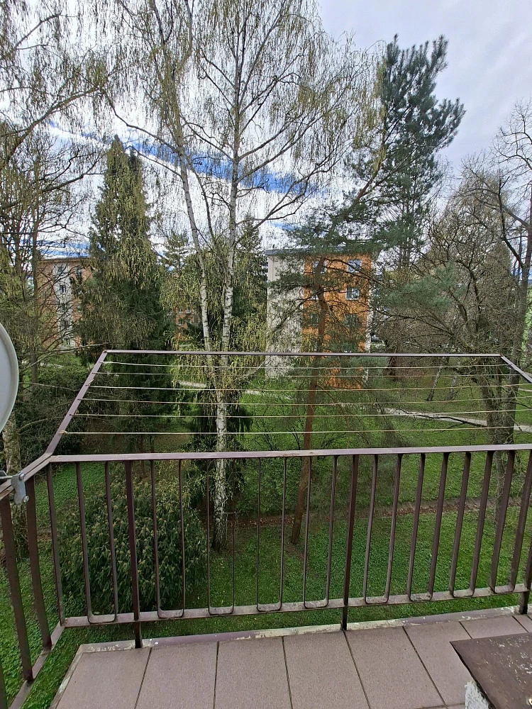 Byt má v chodbě starší vestavěné skříně, koupelna s menší vanou a pračkou, wc samostatně, zařízená kuchyň (není myčka) s lodžií do ulice, částečně zařízený další pokoj s lodžií také do ulice, dále částečně zařízený prostorný obývák s lodžií orientovanou do klidu a zeleně, zařízená ložnice bez lodžie. Všechny pokoje neprůchozí kromě ložnice, do které se vstupuje z obýváku.K bytu náleží sklepní kóje umístěná v suterénu domu. Před domem je možnost krátkodobého bezplatného parkování.