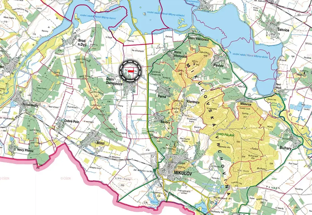 Parcelu můžete najít na katastru nemovitostí zapsanou na KÚ Dolní Dunajovice, listu vlastnictví 1323 a číslem parcely 5455.