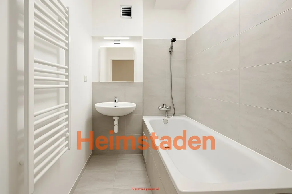 Koupelna bude zcela nová a vybavená vanou, umyvadlem, zrcadlem a moderními obklady ve světlém dekoru. Samozřejmostí jsou nové rozvody vody a odpadu.