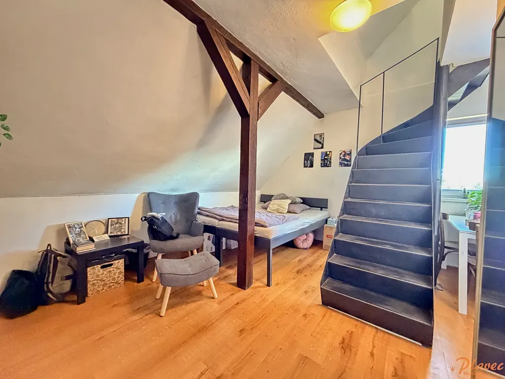 Pokoj je mezonetového typu, nachází se v samostatně stojícím domě, celkem je v domě 6 pokojů. Dům prošel kompletní rekonstrukcí v roce 2018. V ceně je internet v domě. Pokoj má vlastní WC a koupelnu. V pokoji zůstává ve spodní části dvoulůžková postel, stůl se židlí, skříň, zrcadlo a věšák na zdi u vstupních dveří a ve vrchní části komoda vedle koupelny.