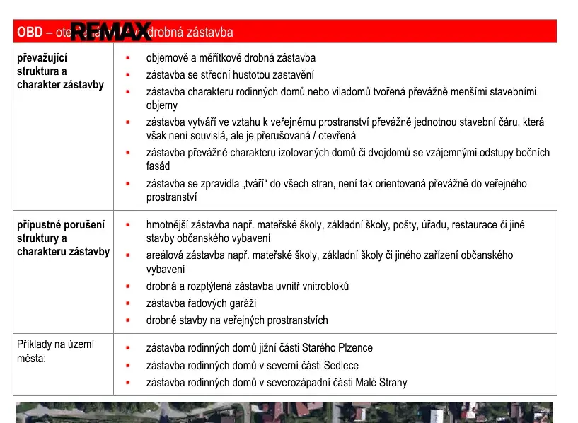 Zastavěnost tohoto pozemku je 30%, výška stavby 12 m, dvě nadzemní podlaží a podkroví. Zástavba charakteru domů či dvojdomů se vzájemnými odstupy bočních fasád.