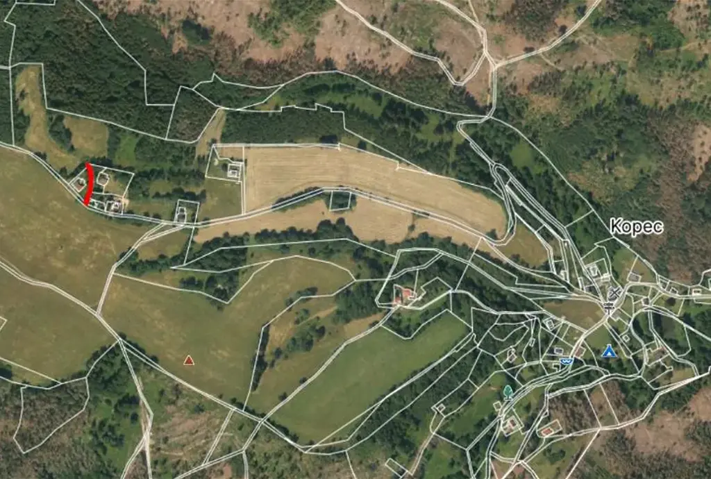 Pozemek p.č. 435/4 je krátká nezpevněná komunikace - travnatá cesta, na okraji části obce Kopec (obec Staré Křečany), zcela obklopená pozemky různých vlastníků.