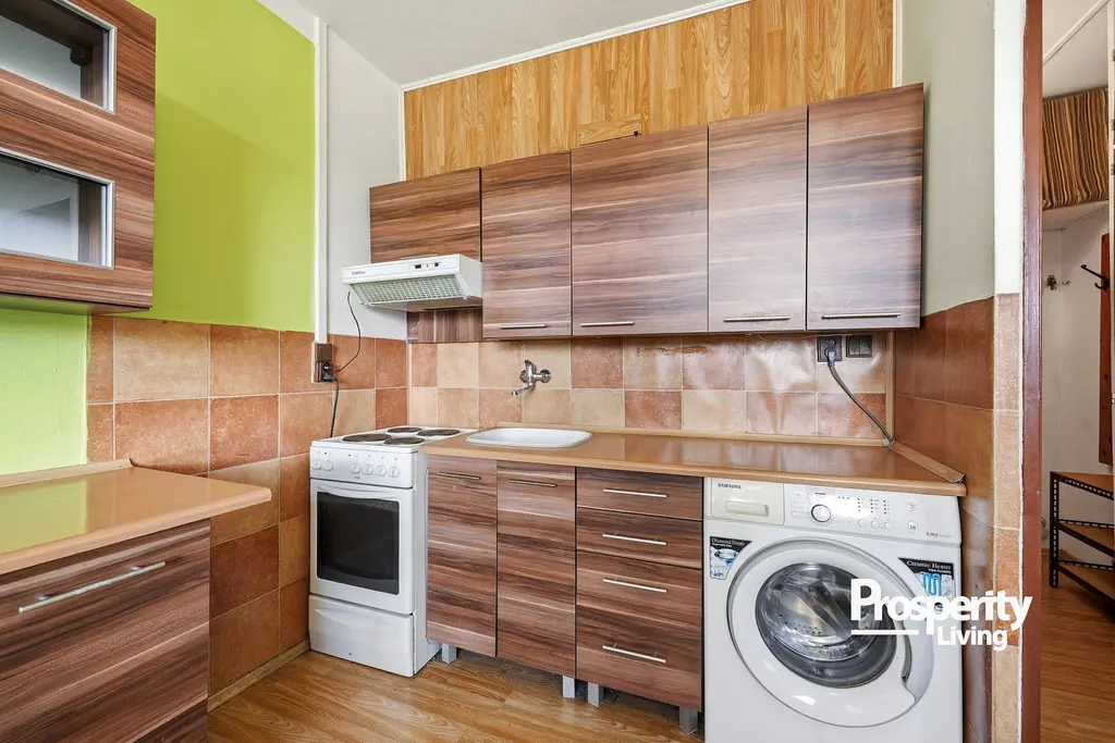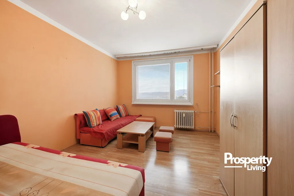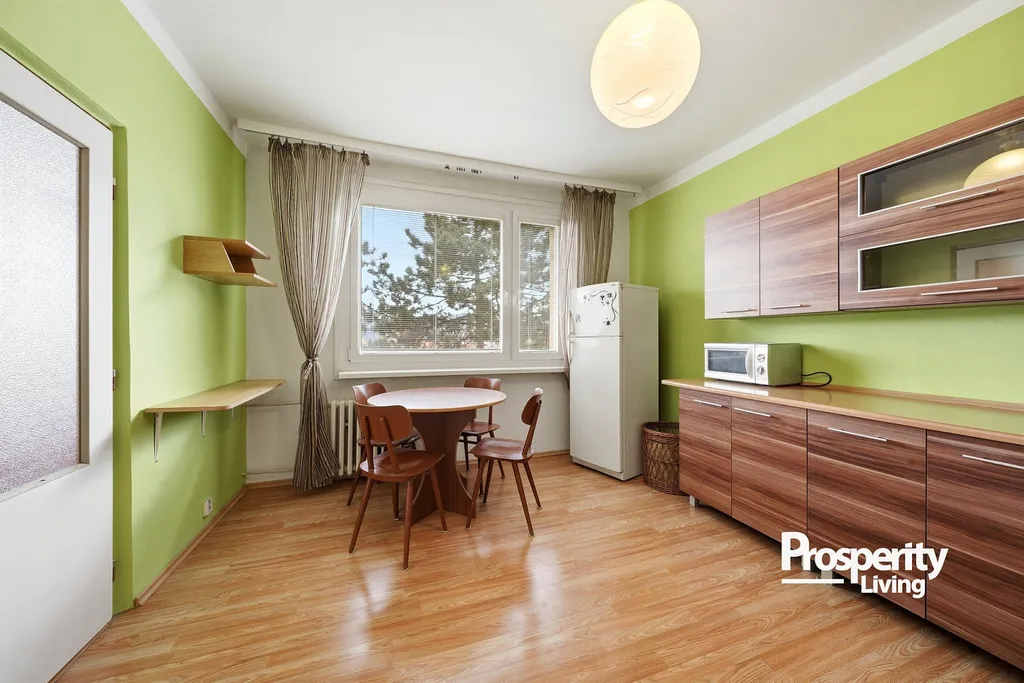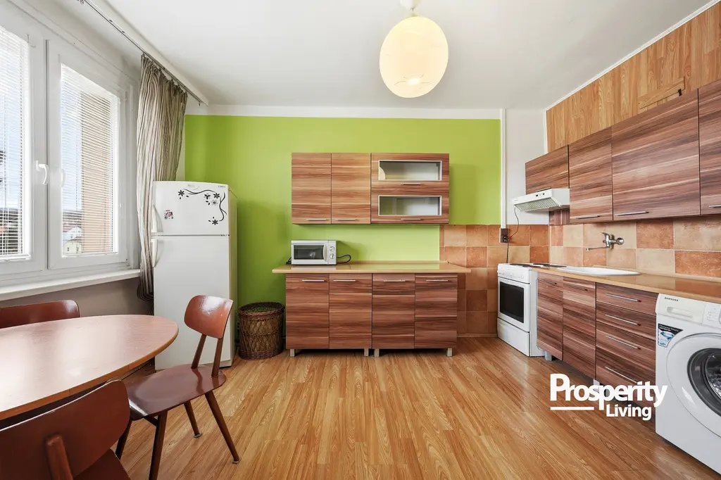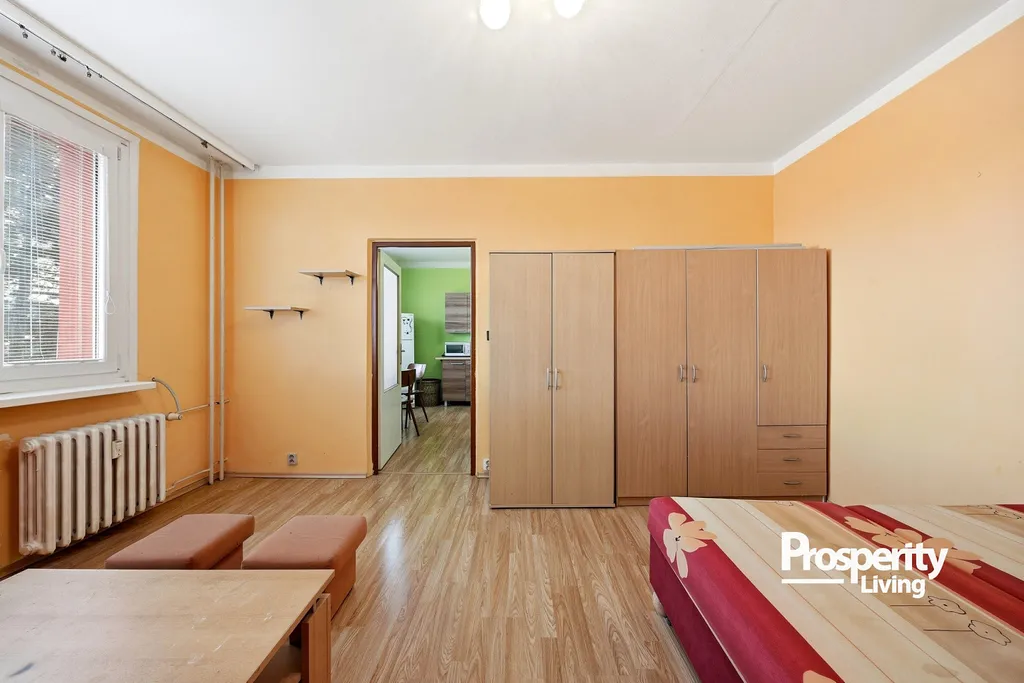 Dispozice bytu tvoří samostatná kuchyně a obytný pokoj, což zajišťuje praktické a přehledné uspořádání vhodné jak pro vlastní bydlení, tak i pro pronájem.