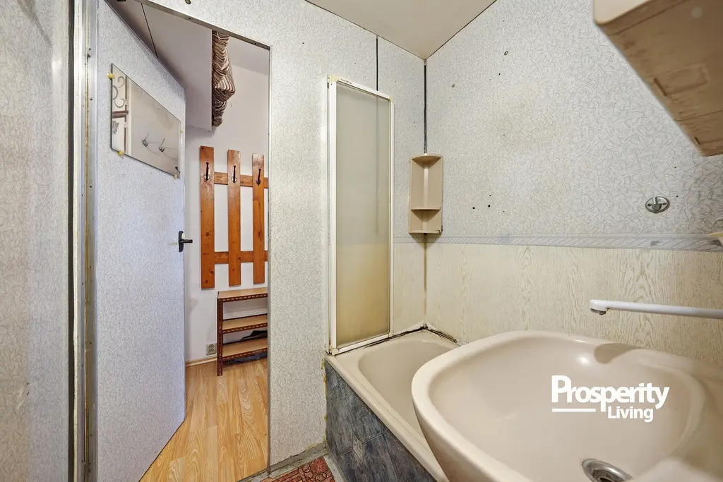 Byt je v udržovaném stavu, zároveň však poskytuje prostor pro úpravy dle vlastních představ. Koupelna je v původním stavu a dává novému majiteli možnost vytvořit si ji přesně podle svého.