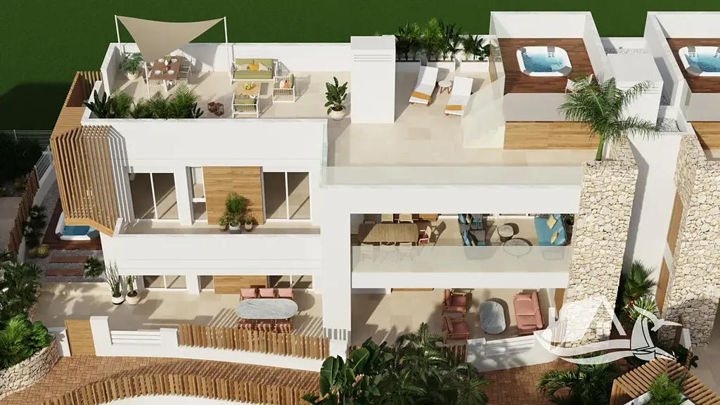 Celý rezidenční komplex je navržený jako uzavřený a klidný prostor s upravenými společnými zahradami a bazénem, který přirozeně doplňuje středomořský styl života. Místo působí komorně, bezpečně a příjemně, což ocení jak rodiny, tak investoři hledající nemovitost vhodnou k pronájmu.