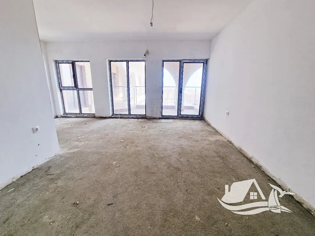 Apartmán o celkové ploše 56 - m² a čisté obytné ploše 46 - m² se nachází ve třetím podlaží a nabízí chytré a flexibilní řešení prostoru. Dispozice je otevřená, ale zároveň dává možnost oddělit spací část a vytvořit tak plnohodnotné 2+kk. Vstupní chodba vede do hlavního obytného prostoru s kuchyní, který přirozeně propojuje denní i noční zónu. Balkon s výhledem na moře dodává celému bytu hloubku a pocit volnosti.