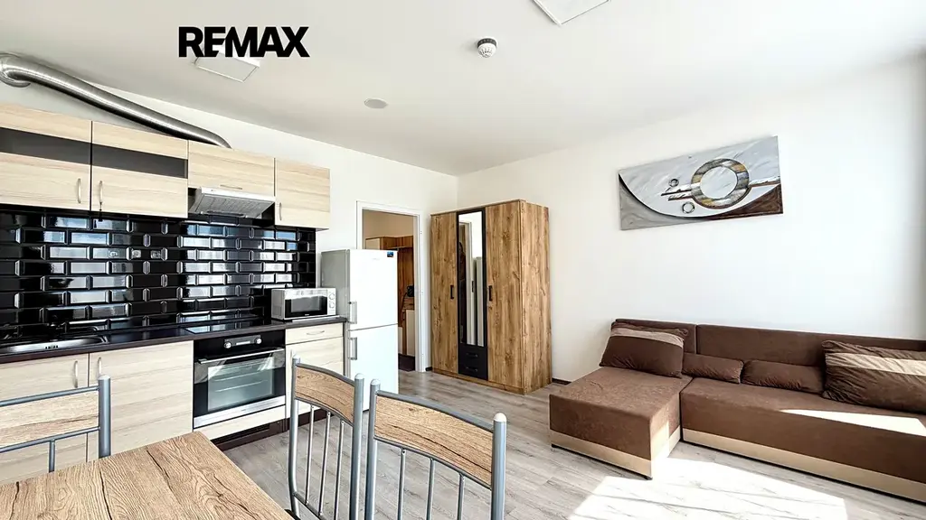 Byt je promyšleně řešený – nabízí obývací prostor s kuchyňským koutem, vstupní chodbu a koupelnu se sprchovým koutem a toaletou. Díky velkým oknům působí světlým, vzdušným a velmi příjemným dojmem.
