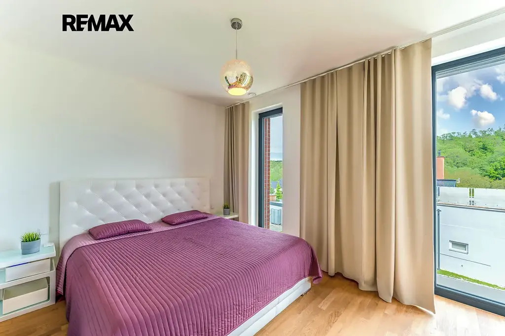 Ve všech obytných místnostech dominuje vysoce kvalitní dřevěná podlaha, velkoplošná francouzská okna a předokenní žaluzie, které zajišťují dostatek světla a soukromí. Koupelny jsou vybaveny italskou dlažbou, čímž dodávají luxusní a moderní dojem. Dům je plně zařízen nábytkem, což znamená, že noví nájemci se mohou ihned pohodlně usadit.