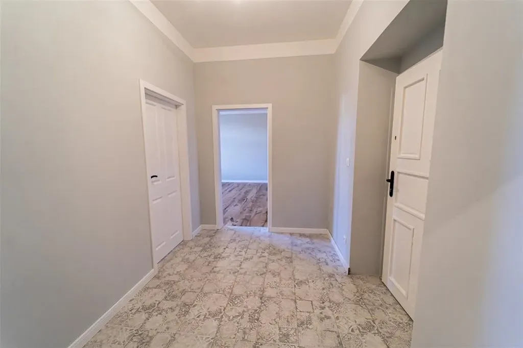 V bytě jsou udělány nové rozvody vody, odpadů, topení i elektřiny. Zdi jsou nově omítnuty, aby byla zaručena rovnost a kvalita stěn. V pokojích jsou položeny nové dřevěné podlahy z kvalitního masivu. Dřevěné prvky prolínají celý byt nové přírodní dřevěné parapety, obložení kuchyně, doplňky v koupelně.