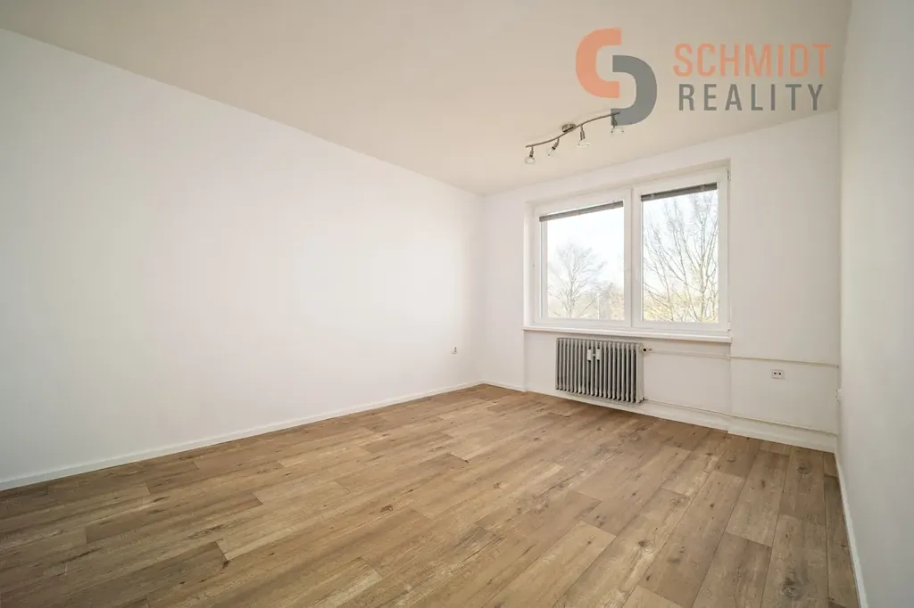 Byt je situován ve 2. nadzemním podlaží panelového domu bez výtahu. Po vstupu do bytu se nachází předsíň, ze které je vstup do jednotlivých místností. Po levé straně se nachází prostorný obývací pokoj s novou podlahou. Vedle předsíně je koupelna vybavená vanou, umyvadlem a toaletou.