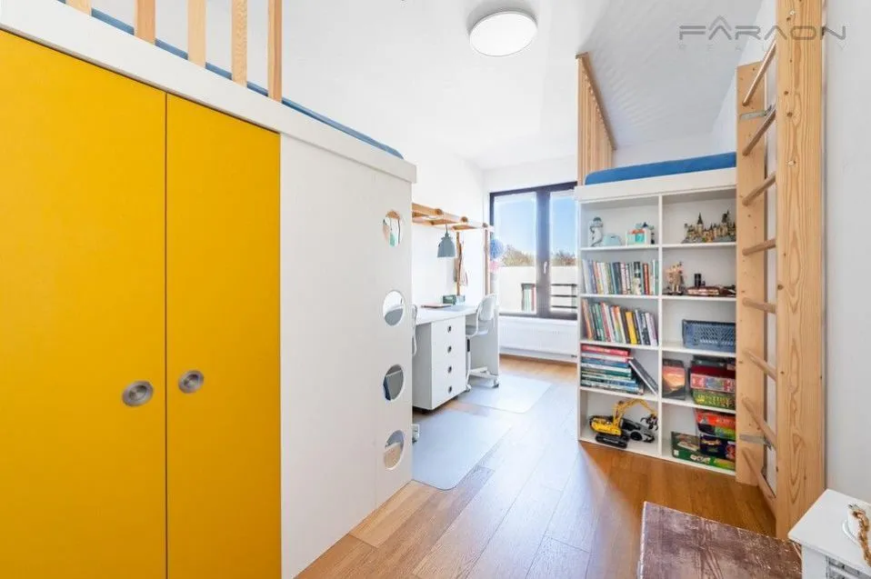 Do standardu vybavení patří kvalitní dřevěné podlahy, dřevěná eurookna, bezpečnostní protipožární vstupní dveře (třídy 3) a centrální vytápění. Vybavení dále zahrnuje vestavěný nábytek na míru, plně vybavenou kuchyňskou linku s kvalitními spotřebiči a kováním BLUM, kompletně řešený dětský pokoj na míru pro 2 děti s dostatkem úložných prostor.