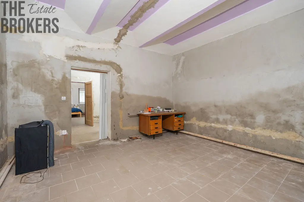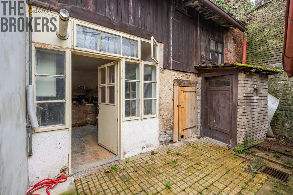 Kromě přízemní části se na půdě nachází jedna menší místnost o výměře cca 8 m². Tento prostor s výhledem do okolí je ideální jako dílnička, pracovna nebo kreativní koutek. Praktické zázemí domu doplňuje nádvoří, na kterém se nachází sklep a několik kůlen vhodných pro skladování materiálu či nářadí. Zahrada je od nádvoří oddělena opěrnou zdí a nachází se ve vyšší úrovni terénu.