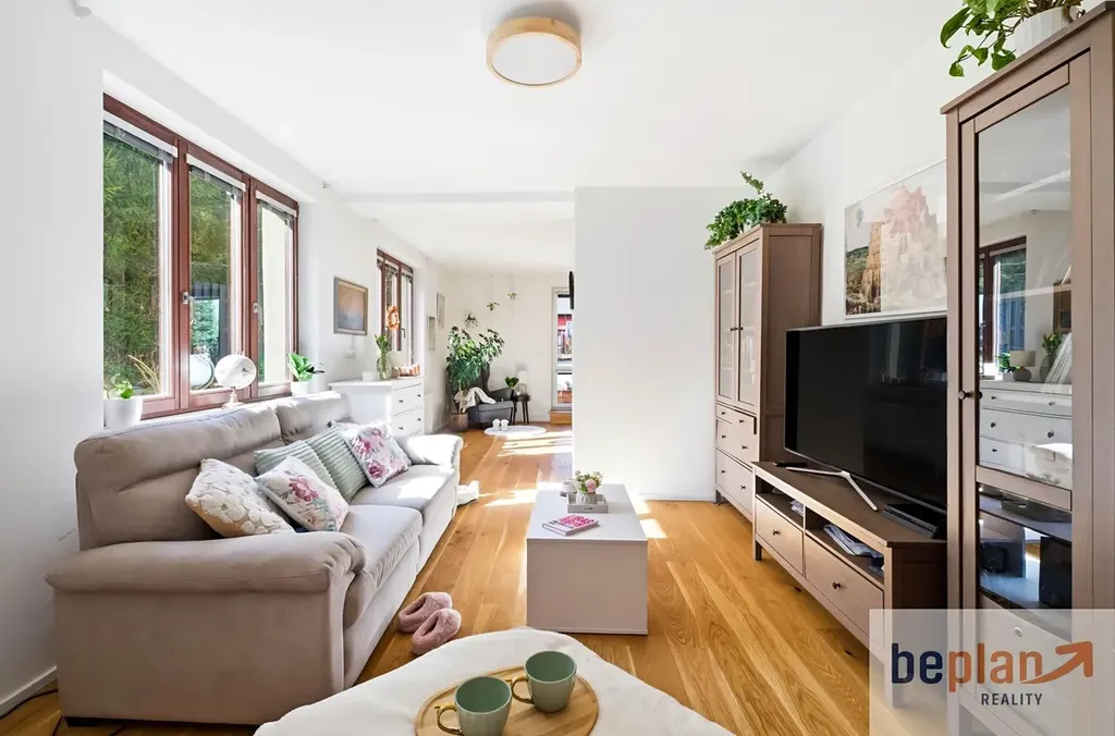 Zahrada má ideální velikost pro snadnou údržbu i využití. Součástí jsou dvě parkovací místa přímo na pozemku. Prostorná terasa přístupná z obývacího pokoje je příjemným bonusem celého domu.