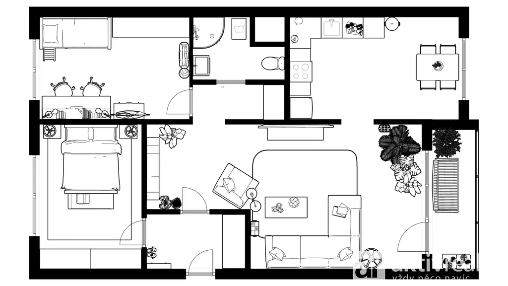 Samotná dispozice bytu je velmi praktická a orientace na západní stranu zajišťuje dostatek přirozeného světla zejména v odpoledních hodinách. Byt tvoří tři samostatné neprůchozí místnosti s velkorysou metráží a kuchyně vybavená linkou, plynovým vařičem, lednicí a myčkou. V bytě zůstávají prostorné šatní skříně. K bytu patří balkon a sklepní kóje. Vytápění je řešeno dálkově.
