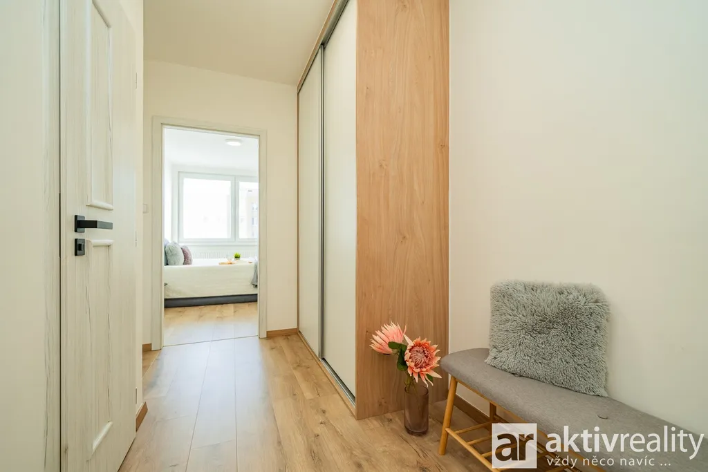 Prodej družstevního bytu 2+kk po kompletní moderní rekonstrukci z roku 2024, bez nutnosti dalších investic. Více informací a dokumenty ke stažení najdete na webu viz video. Velkým benefitem je samostatná komora o ploše 5 m² hned vedle vstupu do bytu. Byt se nachází v 9. patře zatepleného panelového domu po revitalizaci. Rekonstrukce zahrnovala nové zděné jádro, podlahy, kuchyňskou linku, koupelnu, toaletu i okna. V interiéru jsou plovoucí podlahy, v chodbě vestavěná skříň. Kuchyň je vybavena troubou, myčkou, indukční deskou, digestoří, lednicí s mrazákem, vysokou spíží a také prostorem pro pračku, díky čemuž zůstala koupelna vzdušnější a s velkým sprchovým koutem. Okna jsou orientována na východ, byt je tak světlý, ale v létě se nepřehřívá od odpoledního slunce. K bytu náleží sklep cca 1 m². Výhodou je i vstup přes uzavíratelnou chodbu pro tři byty. V domě jsou dva výtahy a na patře společná lodžie. V blízkosti domu je parkování, obchody, školy i zastávky dopravy. Více informací a dokumenty ke stažení najdete na webu viz video.