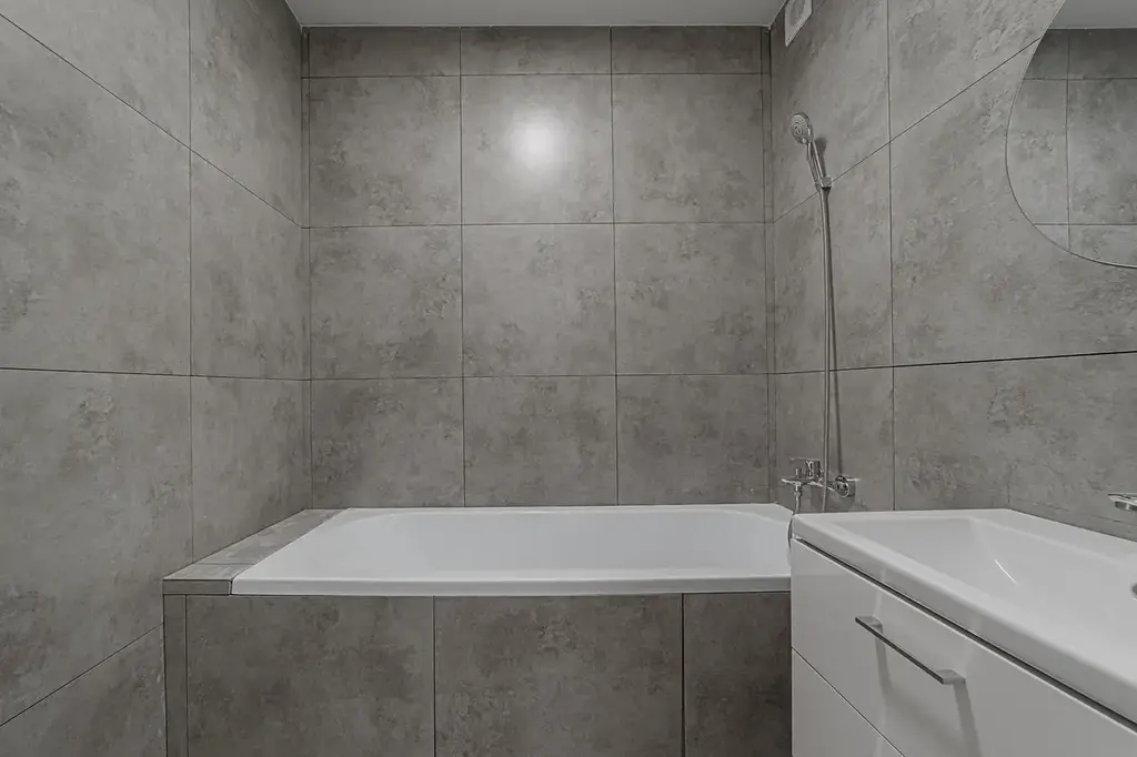 Nová kuchyňská linka s novými vestavěnými spotřebiči v záruce značky Mora, včetně vestavěné myčky a elektrické indukční varné desky. Koupelna má nově vybudované jádro a disponuje vanou a umyvadlem, závěsná toaleta oddělena.