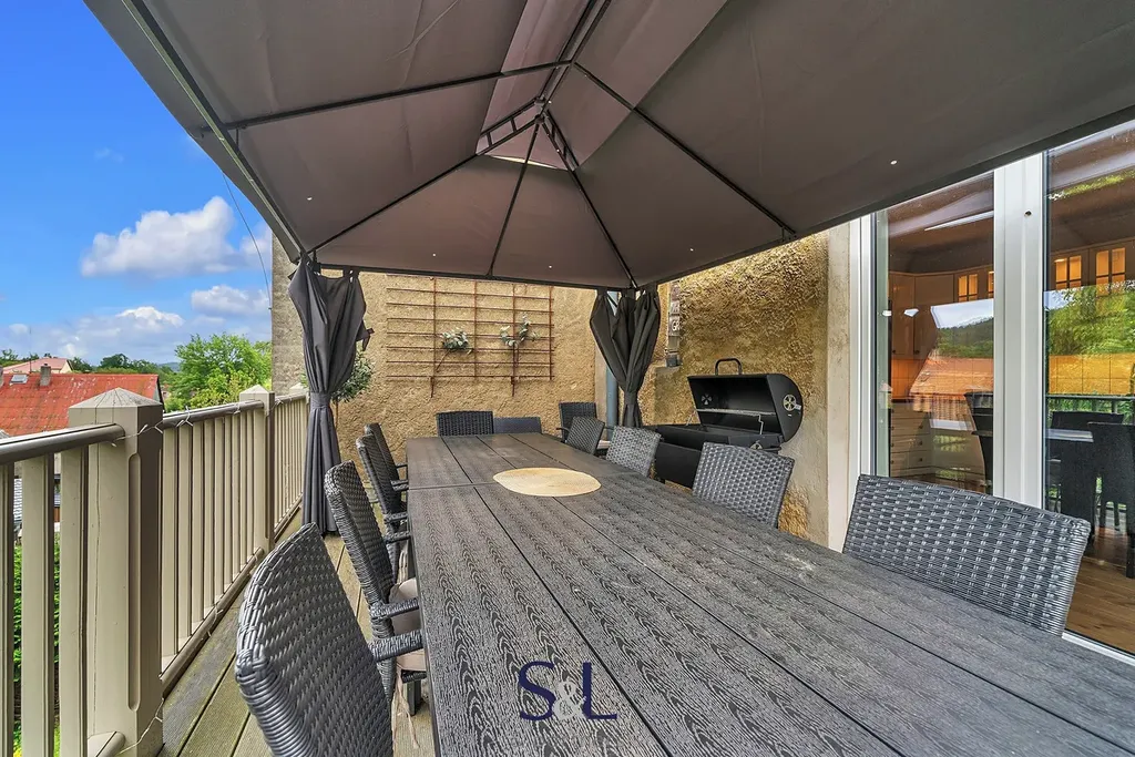 – prostorná kuchyně s jídelním stolem, plynovým i elektrickým sporákem, troubou, myčkou a přímým vstupem na terasu