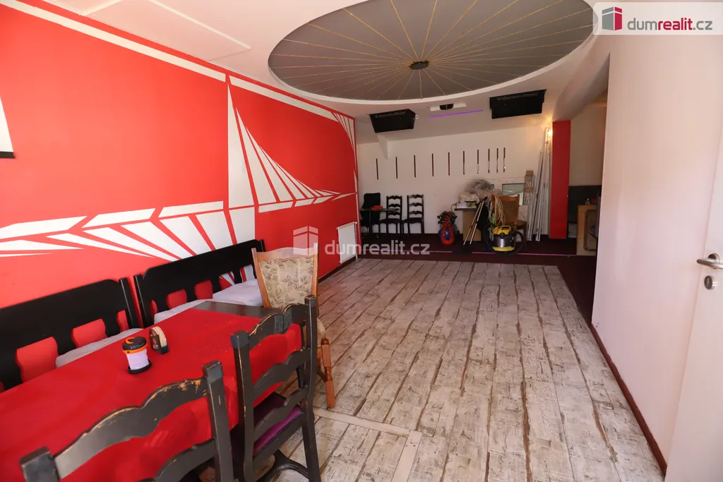 Dumrealit.cz Vám zprostředkuje koupi vícegeneračního atypického rodinného domu, který nabízí jak zázemí pro bydlení, tak podnikání a pronájem. Budova má celkem cca 330 m² užitné plochy, 5 vchodů, zahradu a dělí se na mezonetový byt 4+1, garsonku a nebytový prostor/restauraci/bar/obchod. Přibližný výčet a rozdělení plochy 330 m² je 50 m² sklep, 50 m² půda, 24 m² garsonka, 120 m² byt, restaurace 90 m². Každý prostor má své sociální zařízení. Začněme bytem 4+1, který má svůj samostatný vchod ze zahrady, na kterou vcházíme skrze velká příjezdová vrata z ulice. Byt 4+1 se skládá z předsíně, ložnice, toalety, po schodech nahoru vcházíme do patra, kde je prostorný obývací pokoj, ložnice rozdělená do dvou úrovní třemi schody, velkorysá kuchyně s jídelnou, koupelna s rohovou vanou a druhou toaletou a místem na pračku a sušičku. U kuchyně je navíc prostorný balkon, který je též přístupný po samostatném schodišti ze zahrady a má vlastně svůj vlastní vchod opatřený mříží. Z balkonu je možné se dostat na půdu, která kopíruje velkou část plochy domu a poskytuje hodně úložného prostoru. Zpět na zahradu odkud se dostaneme do menšího baru, kde byla i diskotéka a posezení, bar, další místnost, úložná komora a sociální zázemí. Toalety jsou jak hned u vchodu ze zahrady tak u druhého vchodu z ulice. Obojí toalety jsou pánské i dámské. Prostor by se dal eventuálně ještě rozdělit na případně třeba obchod přístupný z ulice a bytovou jednotku přístupnou ze zahrady. Nyní je vlastně tento prostor průchozí z ulice až na zahradu. Dále je zde ještě další samostatná garsonka, má svůj vchod vedle vrat na zahradu, byla vytvořena z garáže, garáž by se dala obnovit. Garsonka má svou sprchu a toaletu. Centrální zahrada má rozlohu 65 m². Vytápění domu zajišťuje dva roky starý kondenzační kotel, v celém domě jsou radiátory, navíc v kuchyni a koupelně bytu 4+1 je podlahové vytápění. Okna jsou některá nová plastová, fasáda domu je v některých místech zateplená, elektroinstalace je částečně již v mědi, vodoinstalace a odpady jsou také částečně již v plastu. Střecha domu je plechová, celý dům je podsklepený, zde je dílna, místnost s kotlem a další technická/úložná místnost. Dům se nachází v Habartově na klidném místě, kde je zároveň možné dobře zaparkovat. V obci je veškerá občanská vybavenost včetně školy, školky, městského úřadu, Tesca, je zde in-line dráha a koupaliště Boden, jezero Medard, města Sokolov i Karlovy Vary jsou vzdáleny cca 15 minut jízdy. Cena zahrnuje veškerý právní servis i provizi RK. Ev. číslo: 655369.