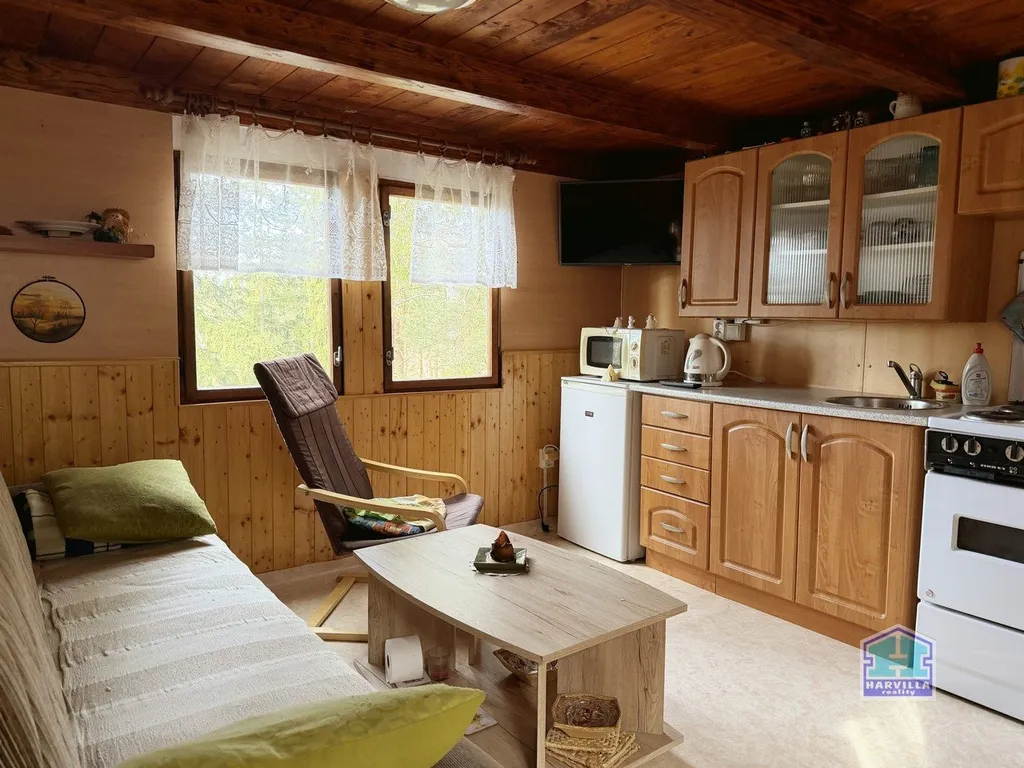 Nabízíme Vám ke koupi dřevěnou rekreační chatu u Hracholuské přehrady v chatové osadě vzdálené 1 km od obce Čerňovice. Částečně podsklepená chata disponuje vstupní verandou s posezením, obývacím pokojem s kuchyňskou linkou, soc. zařízením s vanou a WC. Po dřevěných schodech je přístup do podkroví, kde je snížený prostor na spaní. Do chaty je zavedena elektřina, užitková voda, odpad z WC je sveden do jímky. Chata je situována v lesním pozemku nad vodní nádrží Hracholusky s příjezdem autem až k chatě. Klidná lokalita pro rekreační využití.