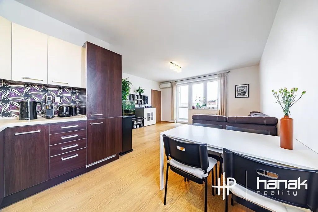 Vážení klienti, nabízíme Vám k prodeji byt s dispozicí 3+kk v Olomouci, v městské části Neředín, v nejvyšším, čtvrtém, patře cihlového domu s výhledem na západ, z větší části do zeleně. V žádané západní části města s rodinnými a bytovými domy. Velkým kladem bytu je garážové stání v garážích polozapuštěného podzemního podlaží.
