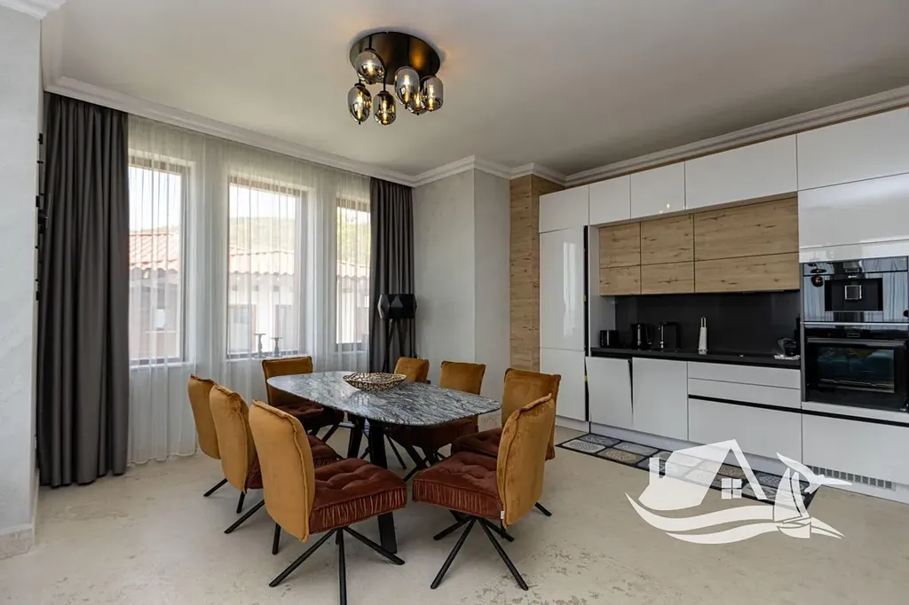 Představujeme vám jedinečný dvoupodlažní rodinný dům 4+kk o celkové ploše 200 m², který se nachází v prestižním uzavřeném komplexu Venid Eco Village. Tento projekt je situován na výjimečném místě nad Dinevi Resort, na úpatí pohoří Stara Planina, jen pár minut od Černého moře v oblíbeném letovisku Sveti Vlas.