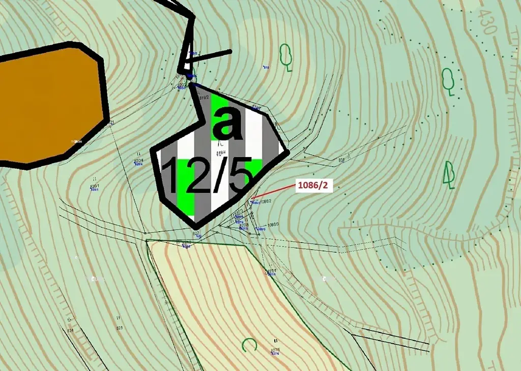 Lesní pozemek o výměře 26 m2, parcelní číslo 1086/2, podíl 9/10, katastrální území Zubrnice, obec Zubrnice, obec s rozšířenou působností Ústí nad Labem, okres Ústí nad Labem, Ústecký kraj.