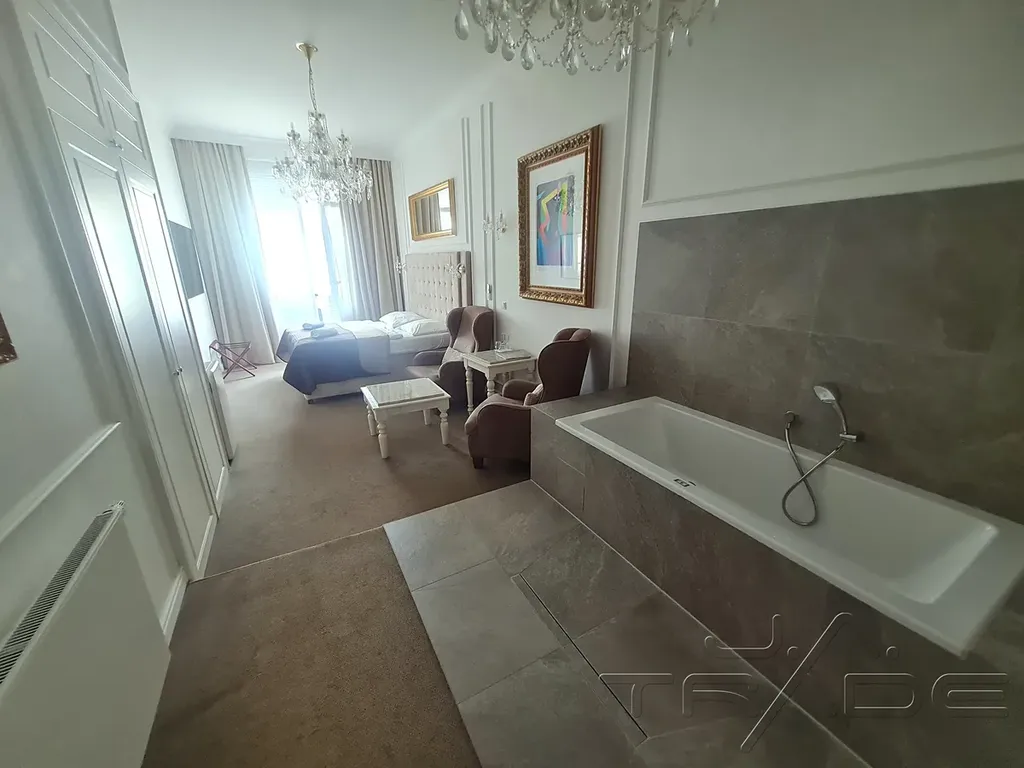 Apartmán o podlahové ploše 40 m s balkonem s výhledem na město, klimatizací, koupelnou s vířivou vanou, TV s plochou obrazovkou, zvukovou izolací, Wi-Fi. Je zde i možnost propojení jednotlivých apartmánů.