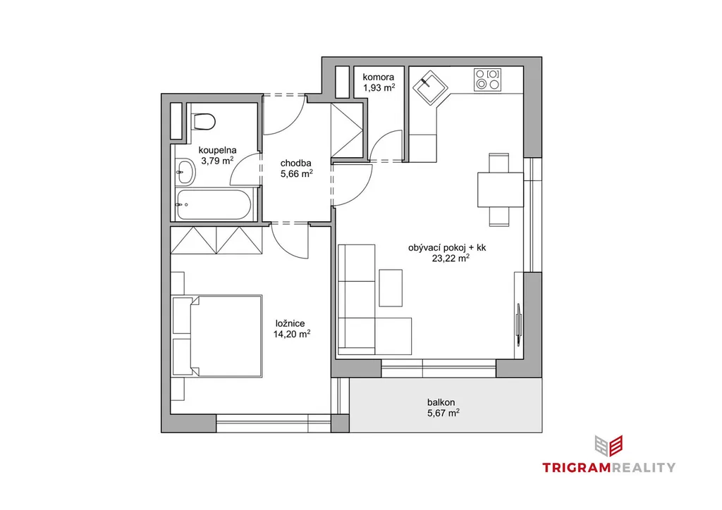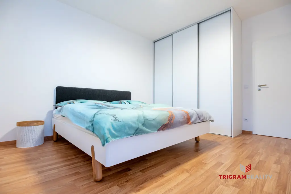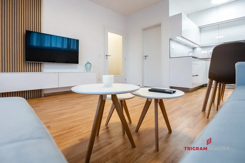 Byt zaujme svým promyšleným dispozičním řešením a vzdušností. Dominantou je vkusně zařízený obývací pokoj s kuchyňským koutem a přímým vstupem na balkon orientovaný na jihozápad, který nabízí příjemné odpolední světlo i klidné posezení.