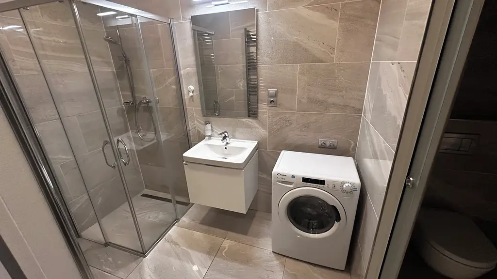 Vybavení apartmánu je moderní a vkusné. Vytápění je zde podlahové a o čerstvý vzduch se stará rekuperace v bytě.