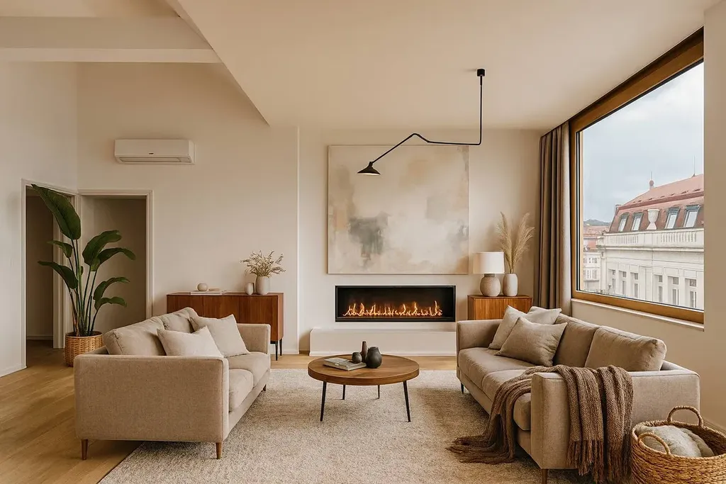 Dominantou prostoru je velkolepý obývací pokoj s kuchyňským koutem o výměře 56,11 m², vybavený velkoformátovými okny, která zajišťují celodenní přísun přirozeného světla. Tento prostor nabízí ideální prostředí pro společenský život, rodinné zázemí i komfortní pracovní zónu.