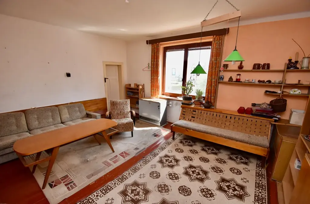 Dům je dvoupatrový o celkové dispozici 5+1 s koupelnou a wc, dále se zde nacházejí další menší 2 prostory možné využít jako úložné případně vhodné pro vybudování druhé koupelny a wc. Dům je v původním, ale zachovalém stavu s potenciálem v podobě využití jejího prostoru a možné budoucí rekonstrukce z hlediska vyšších stropů v přízemí, které nabízí možnost zaklopení veškerých instalací do podlahy i snížení stropů apod., není tak nutné kopání a bourání z těchto důvodů.