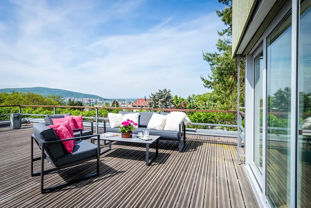Společnost Protsenko & Svoboda v zastoupení majitele nabízí k prodeji moderní rodinný dům o rozloze 460 m² s terasou o rozloze 30 m² na pozemku 874 m², v klidné a vyhledávané lokalitě Lamač.