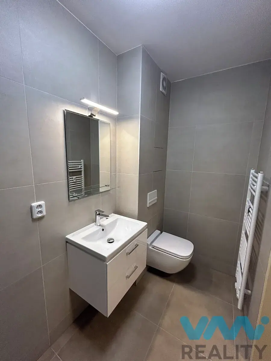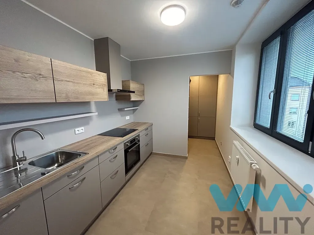Kuchyň je samostatná, za kuchyní je prostor pro lednici. Další pokoj je samostatný, průchozí do dalšího samostatného pokoje. Kuchyň je vybavená linkou včetně vestavěných spotřebičů (myčka, sklokeramická deska, elektrická trouba, digestoř, bez lednice). Koupelna a toaleta jsou spojené, v koupelně je sprchový kout a umyvadlo se skříňkou.