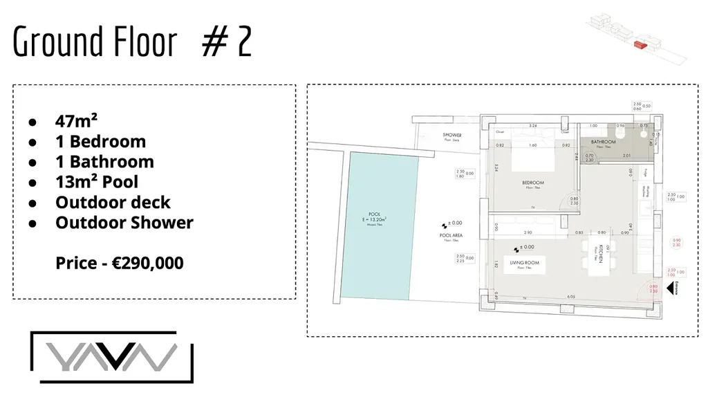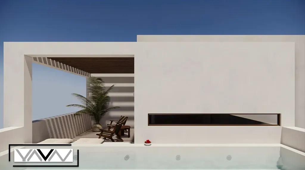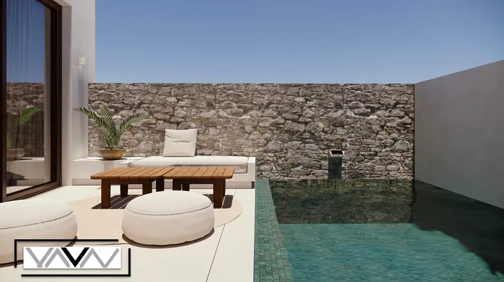Velkým benefitem této nemovitosti je soukromý venkovní bazén o velikosti cca 13 m² a venkovní sprcha, které zajišťují maximální komfort a soukromí.