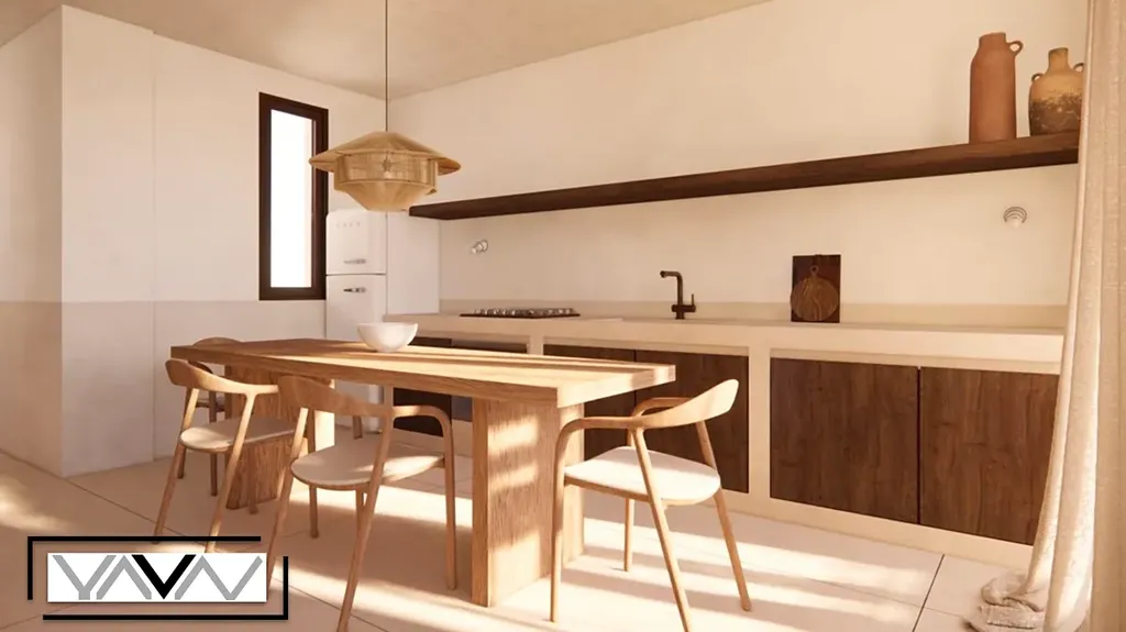 Apartmán se nachází v prvním podlaží moderního projektu a nabízí užitnou plochu 47 m² s praktickou dispozicí. Dispozičně zahrnuje jednu ložnici, obývací pokoj s kuchyňským koutem a koupelnu. Z obývacího prostoru je přímý vstup na venkovní terasu s dřevěnou palubou, ideální pro relaxaci.