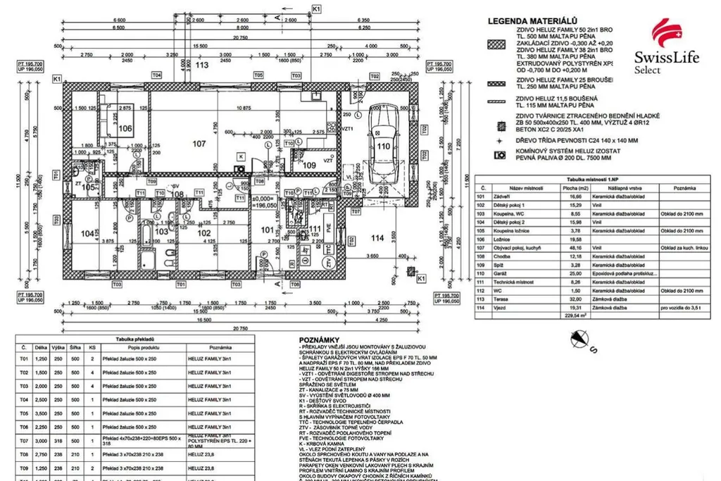 V ceně je i kompletní projektová dokumentace na RD včetně stavebního povolení o celkové zastavěné ploše 240 m2 a podlahová ploše 229,5 m2 včetně garáže.