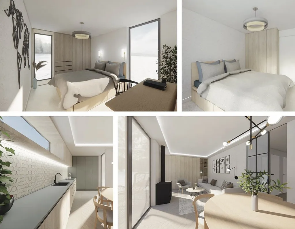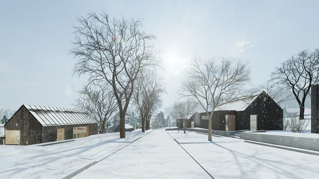 Dům je součástí designového modulárního resortu na Andělské Hoře, který nabízí příjemné zázemí pro relaxaci i aktivní trávení volného času – nechybí zde například finská sauna, ochlazovací jezírko nebo kavárna.