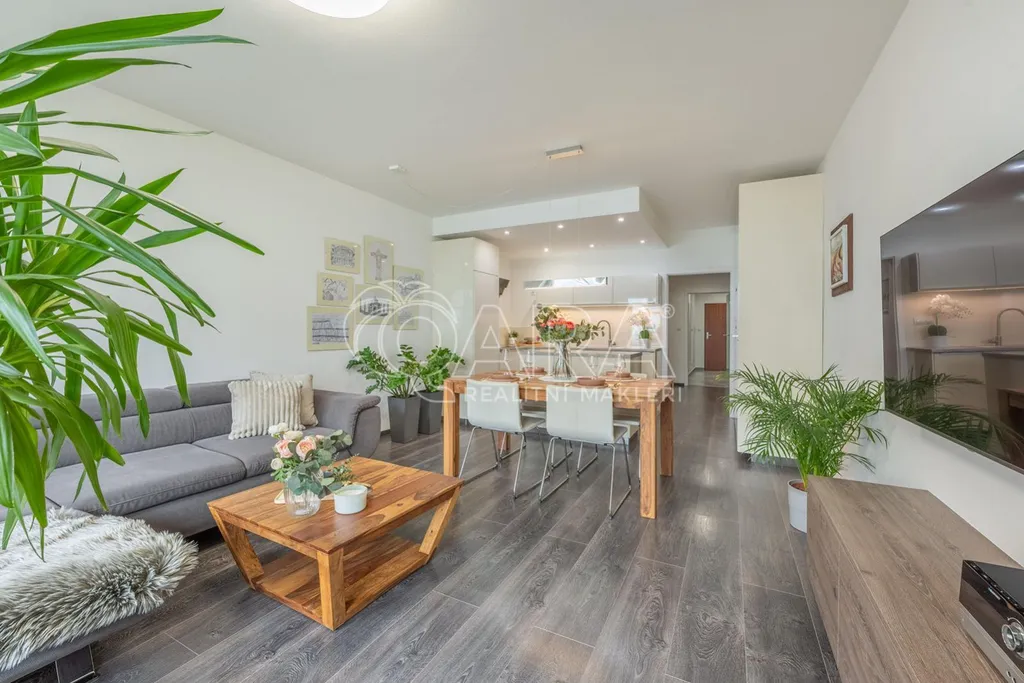 Byt o celkové výměře 136,2 m2 (vnitřní plocha 113,5 m2, balkon 7,2 m2, lodžie 12,5 m2) je výjimečně dobře dispozičně řešen a sestává ze vstupní chodby, obývacího pokoje s kuchyňským koutem, 3 ložnic, koupelny se sprchovým koutem a WC, chodby a koupelny s vanou a s WC. Z obývacího pokoje a ložnice je možný vstup na jižně orientovanou lodžii, ze dvou dalších ložnic pak je vstup na severně orientovaný balkon. V celém bytě je položena plovoucí podlaha, v předsíni a v koupelnách je dlažba. Vytápění zajišťuje centrální plynová kotelna v domě. Měsíční poplatky za byt jsou 3 995,- Kč + zálohy na elektřinu. Dům je vybaven výtahem. V suterénu domu jsou garáže vybavené kamerovým systémem, kde je možnost pronajmout si garážové stání.