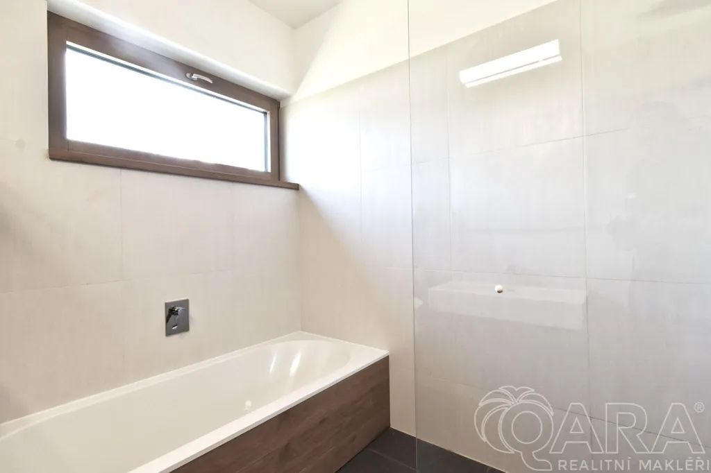 Na okraji Nového Města na Moravě, v nové zástavbě, najdete moderní architektonický koncept bezbariérového domu dispozice 4+KK, navržený kanceláří Labor13 jako plynulé propojení vzdušného interiéru s prostornou terasou a zahradou i okolní krajinou. Srdcem domu je prostorný obývací pokoj (40 m2) s vysokým stropem, moderní kuchyní a krbem. Velkoformátová okna jsou orientována do zahrady, výstupem na terasu a pohledem a na okolní lesy. Navazující chodba vás zavede do dvou ložnic (12,5 m2) se samostatnými výstupy do zahrady, a pracovny (11,1 m2) a samozřejmě nechybí prostorná koupelna s vanou, sprchovým koutem a umyvadlem, dále samostatné WC, šatna, vstupní hala a dům končí technickou místností a prostornou garáží a dalšími venkovními stáními. Vytápění a ohřev vody zajišťuje plynový kondenzační kotel s podlahovými rozvody. Z prostoru garáže je řešen výstup do stávajícího půdního prostoru (cca 97 m2), který je možné dále využít dle vašich představ. Užitná plocha přízemí činí 137 m2 a terasa s ochozem téměř 35 m2. Zajímavým prvkem je i dřevěné obložení fasády. Celý dům je obklopen zahradou o výměře necelých 700 m2. Samotné Novoměstsko mnozí považují za nejhezčí kout Vysočiny. Je to kraj malebných kopců, hlubokých lesů a skal. Město se pyšní zámkem, starou radnicí, kostely, muzeem. Nelze opomenout i proslulý lyžařský areál. Nemovitost díky svému umístění a dispozici osloví náročné klienty, kteří hledají nejen klidné prostředí pro život, ale třeba i možnosti bohatého sportovního vyžití.
