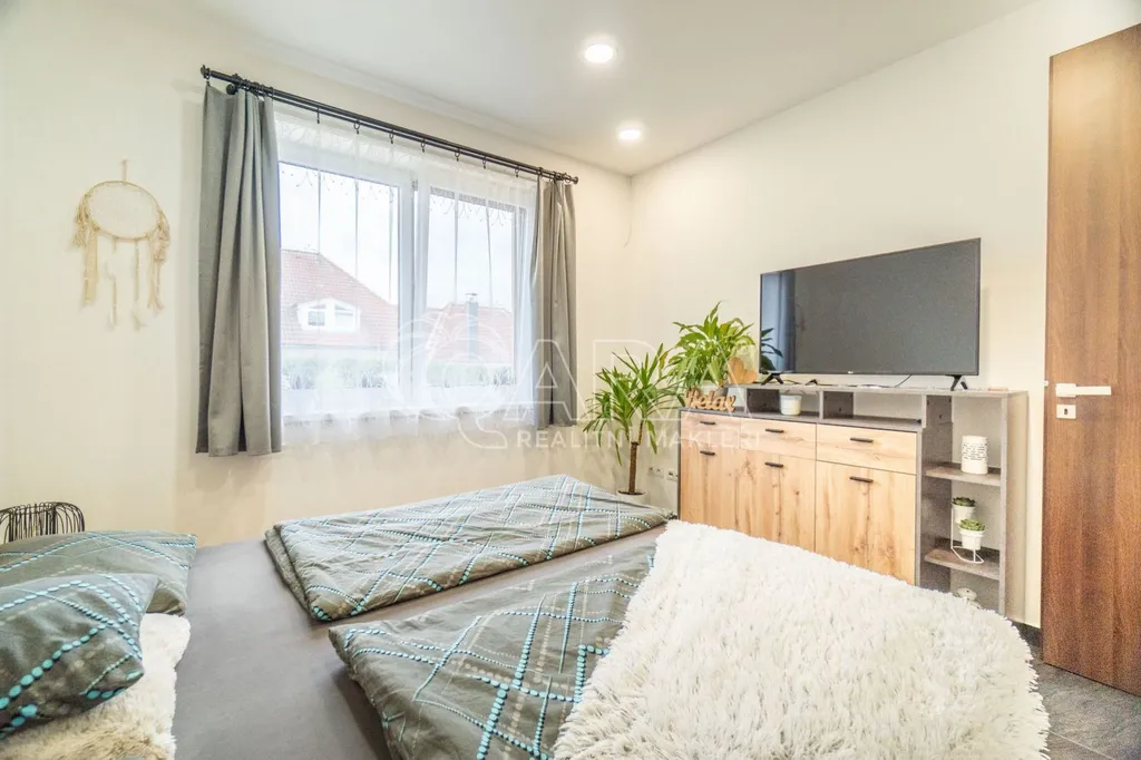 Součástí domu je garáž a před ní také dostatek parkovacího místa. Potěší vás i velmi nízké náklady na provoz (3 500 Kč měsíčně), což potvrzuje i energetická náročnost kategorie B. Je zde instalováno jedno z nejlepších tepelných čerpadel IVT zeměvoda.