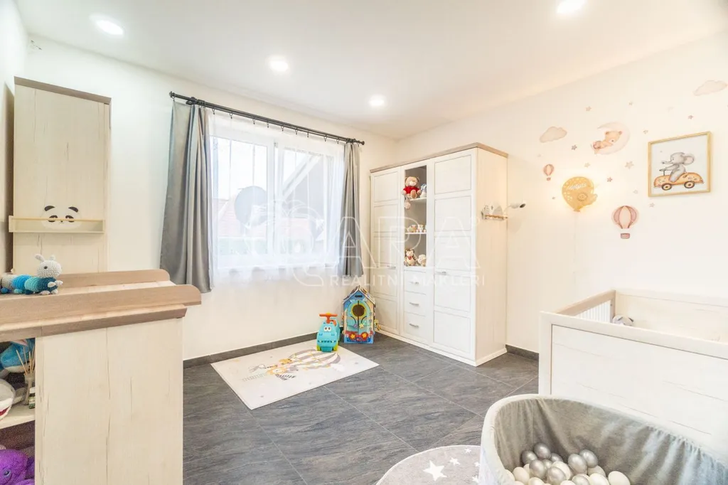 Tento dům vyniká svou velkorysou dispozicí 7+kk, která nabízí dostatek prostoru i soukromí pro každého člena rodiny. Dominantou je prostorný obývací pokoj s kuchyňským koutem, na který navazují další místnosti, a to ložnice, dětský pokoj, 2x pokoj pro hosty, dvě pracovny, šatna, technická místnost, koupelna a samostatné WC. Více naleznete v přiložené 3D prohlídce. Díky nadstandardní výšce dveří působí celý interiér ještě vzdušnějším a elegantnějším dojmem.