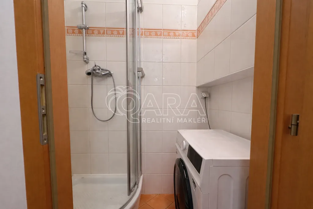 Byt disponuje dvěma koupelnami jedna s vanou, umyvadlem a toaletou, druhá se sprchovým koutem a pračkou. Další toaleta je samostatná. Ve vstupní chodbě se nachází prostorné vestavěné skříně. Z bytu je příjemný výhled do zeleně i do klidného vnitrobloku, kde je k dispozici uzavřené dětské hřiště.