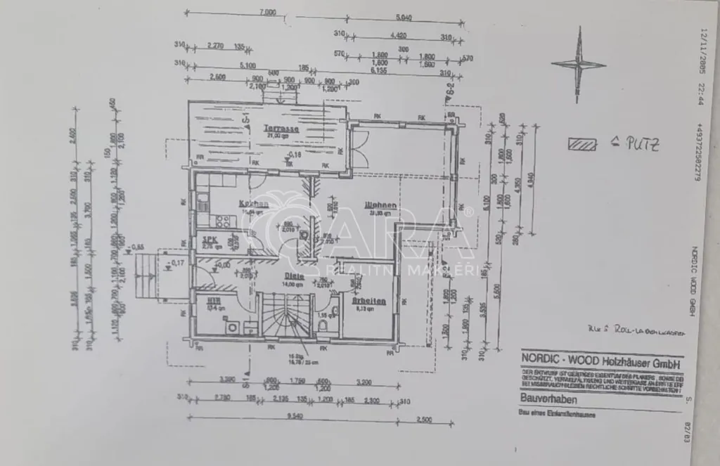 1. podlaží: vstupní hala, technická místnost s lyžárnou a prádelnou, kuchyně se spíží, obývací pokoj s jídelnou a krbem, hostinský pokoj, samostatné WC.