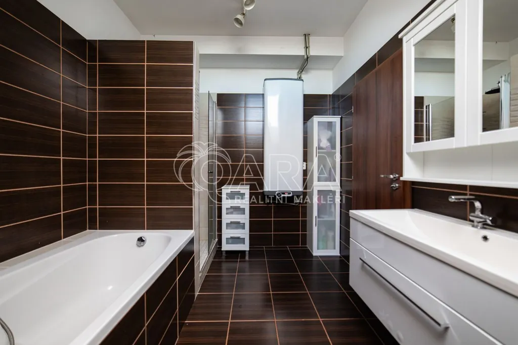 Byt je velmi světlý a prostorný. Vytápění zajišťuje tepelné čerpadlo a ohřev vody Bojler. Koupelna je vybavena velkou vanou, zděným sprchovým koutem a umyvadlem. Toaleta je samostatná. Obývací pokoj je spojen s kuchyní, kde se nachází nová kuchyňská linka s vestavěnými spotřebiči, je velmi prostorný, světlý a tvoří centrální prostor k odpočinku, nebo zážitkům s rodinou s krásným výhledem do zeleně.